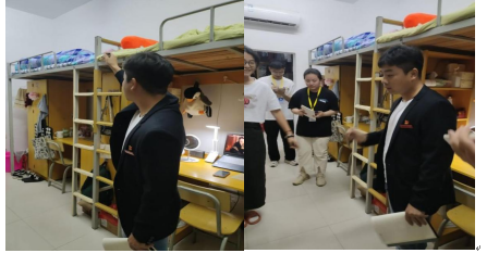 4月19日晚上,我院辅导员冯晓龙带领班级事务中心四名负责人从学生宿舍一栋开始,从卫生、安全等方面检查每个班级推选的优秀宿舍,并提醒学生严禁占用消防通道、严禁使用大功率电器、保持好宿舍卫生、勤倒垃圾、叠好被子。通过走访各班寝室,部分宿舍存在着卫生脏、乱、差等情况,未发现使用大功率电器现象。