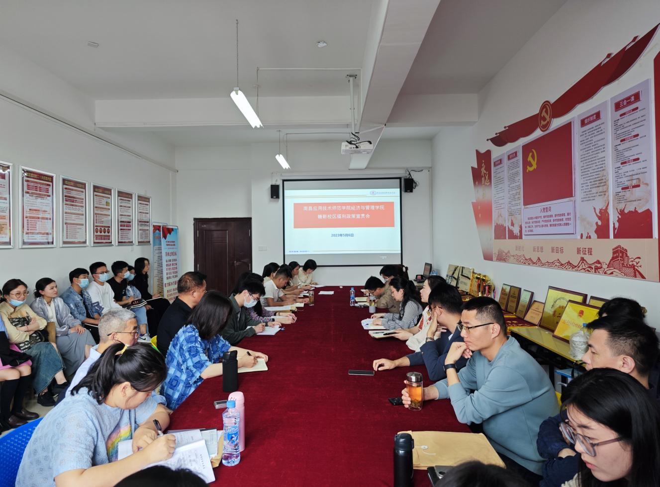 5月6日下午,在1207会议室学院召开赣新校区福利政策宣贯会,全体教职工参加会议,会议由党总支书记王颖主持。