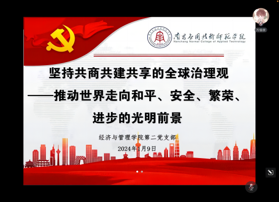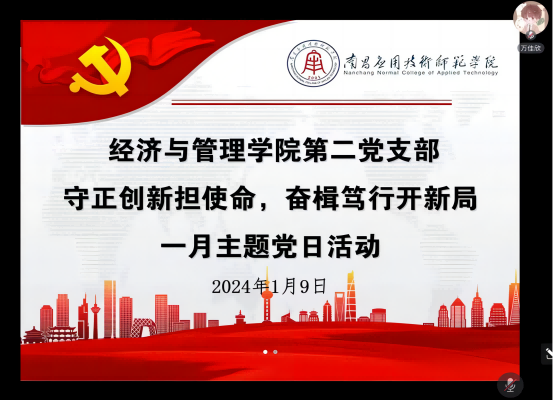 为增强我院党员党性修养,全面提高党员队伍的整体素质,2024年1月9日,我院第二党支部通过腾讯会议线上开展以“守正创新担使命,奋楫笃行开新局”为主题的党日活动。本次会议由我院第二党支部书记万佳欣主持,第二党支部全体党员参加。