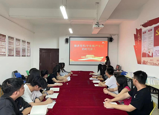 为深入学习贯彻习近平总书记关于党纪学习教育的重要讲话和重要指示精神,进一步加强支部成员的党性教育和纪律意识,2024年5月21日,经济与管理学院第二党支部书记在1207党员活动室为支部全体党员讲授党纪学习教育专题党课——《做讲党性、守党规、严党纪的时代新人》。