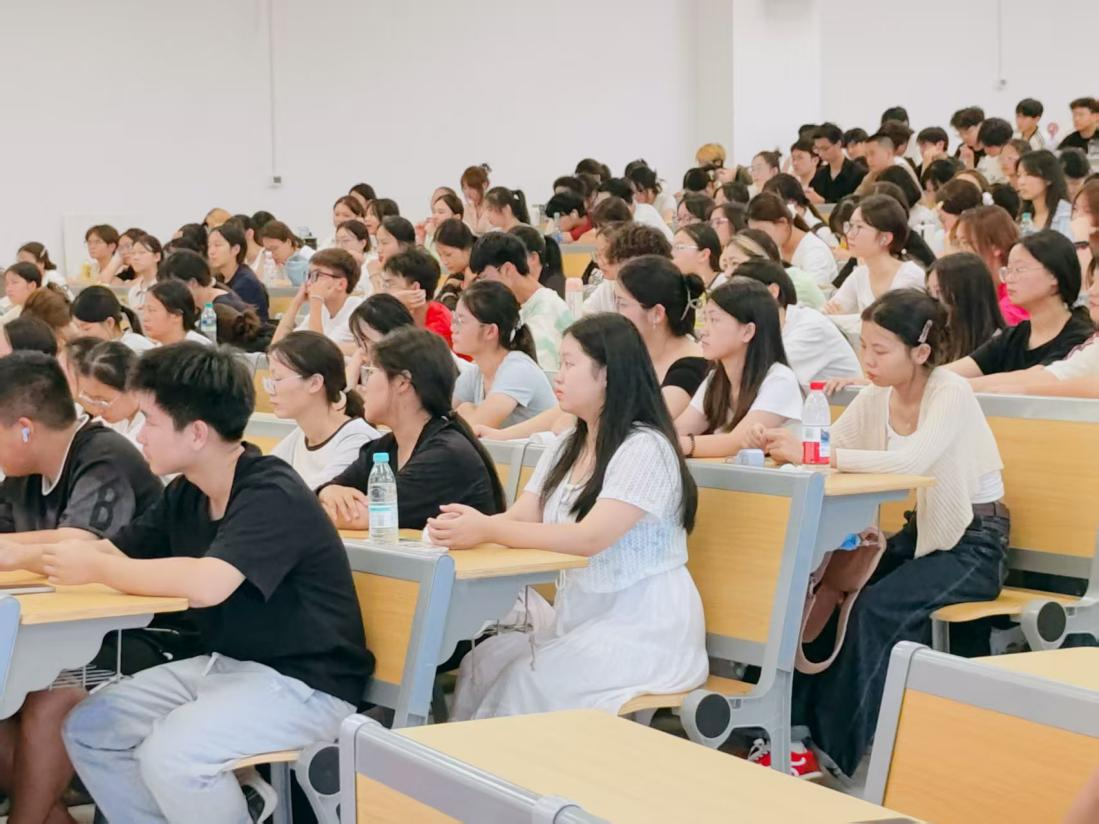 随后,龙犇带来思想政治教育讲座。他结合新时代的背景,阐述了思想政治教育对于大学生成长成才的重要性。他引用鲁迅的《彷徨》《呐喊》《伤逝》《朝花夕拾》,形象地描绘出大学四年不同阶段的心理变化与成长轨迹,让新生们对大学生活有了更清晰的认知。同时,龙犇还向新生们提出三点建议:一是要志存高远,将个人理想与国家需求紧密融合;二是要以“空杯心态”重新出发,适应大学学习与角色转变;三是要全面发展,提升专业能力的同时注重人格修养与兴趣培养,在实践中涵养家国情怀与社会责任。他的话语饱含着对新生们的殷切期望,为他们的大学征程指明了方向。
