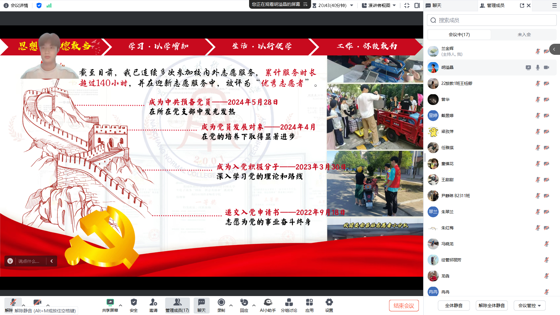 答辩会上,8 位候选学子依次上台展示。他们结合 PPT,从思想觉悟、学业成绩、科研实践、学科竞赛、志愿服务及未来规划等方面,全面阐述个人成长经历与突出成果:有的学子凭借优异的专业成绩稳居年级前列,用扎实的学识展现学霸风采;有的学子深耕科研领域,在学术论文撰写、科研项目参与中积累丰富经验;有的学子积极投身社会实践与志愿服务,以实际行动践行青年担当。答辩过程中,评委老师围绕专业知识、科研思路、实践感悟等内容与候选学子深入交流,细致考察其综合素养与发展潜力。整场答辩节奏紧凑、氛围热烈,既展现了经管学子卓越的综合能力,也为在场同学提供了学习借鉴的宝贵机会。