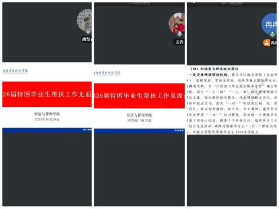 为深入落实省教育厅和学校相关工作要求,切实推进毕业生就业工作,10月28日下午,我院通过线上会议平台召开了2026届特困毕业生就业帮扶见面会。学院主要领导、全体毕业班辅导员、毕业生指导老师及所有困难毕业生同学齐聚云端,共同参与了此次会议。