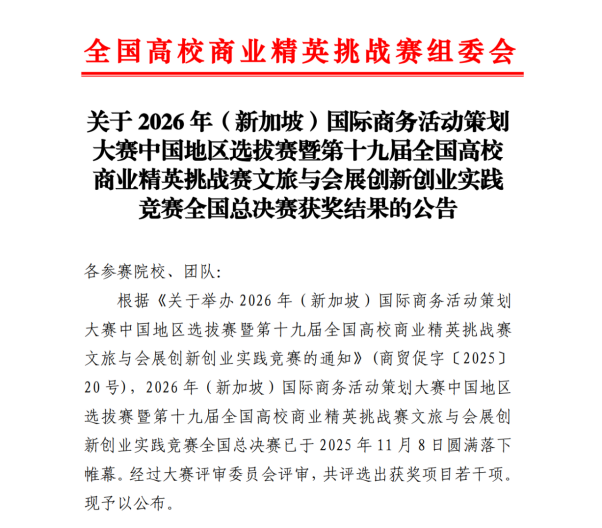 近日,2025 年全国高校商业精英挑战赛(文旅与会展创新创业实践竞赛、国际贸易竞赛)赛事结果正式公布,该赛事项目为大学生84项赛事目录榜单之一。我校经济与管理学院旅游管理、国际经济与贸易和跨境电子商务专业的学子们凭借扎实的专业知识与出色的实践创新能力,在多个赛道中脱颖而出,斩获9国家级奖项,其中全国二等奖5项、全国三等奖4项,奖项数量与质量均实现了新突破。同时我校还荣获国际贸易竞赛最佳院校组织奖,尽显应师学子的专业风采与学校的育人成效。