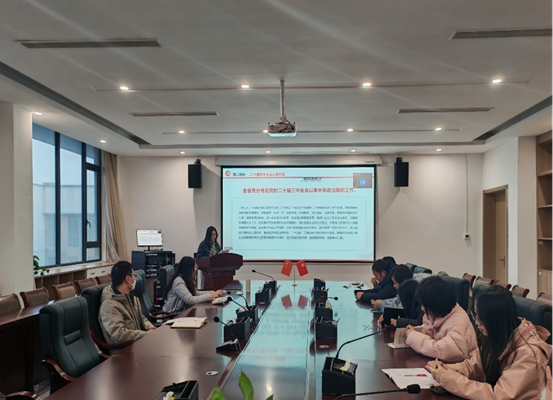 为深入学习贯彻党的二十届四中全会精神,切实把思想和行动统一到党中央重大决策部署上来,12月23日,我院第一党支部在沁苑八实506党员活动室开展了以“学习贯彻党的二十届四中全会精神”为主题的专题党课,本次党课由支部统战委员宗懿主讲,全体党员参会。