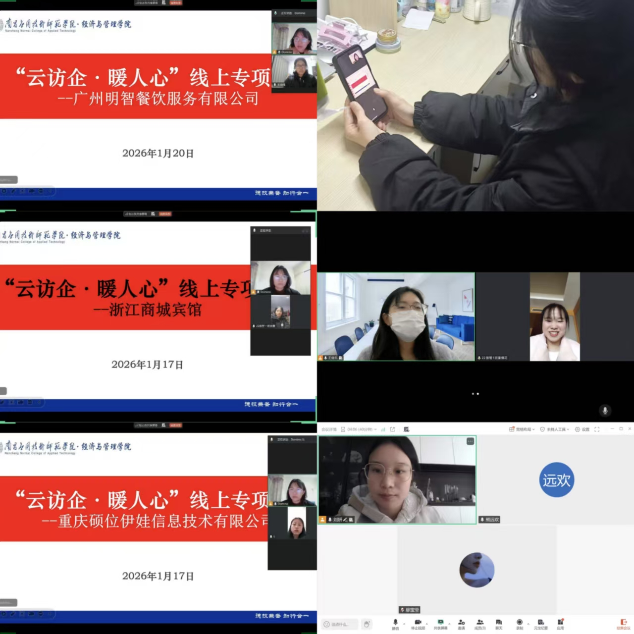 为深入贯彻校企合作育人理念、推进产教融合发展,精准对接行业发展需求,拓宽学生实习就业渠道,近期,我院智慧文旅系组织教师通过线上线下形式向义乌幸福湖国际会议中心、江西越兴工程检测有限公司、重庆硕位伊娃信息技术有限公司、上海源谱诺文化科技有限公司、嘉兴南湖宾馆有限公司等十余家企业开展 “访企拓岗”专项行动。各企业人力部门负责人或业务骨干代表参加座谈。
