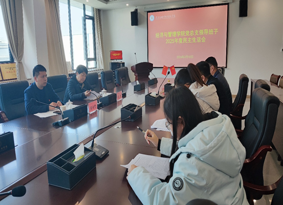 3月10日,经济与管理学院党总支领导班子于沁苑八实506党员活动室召开2025年度民主生活会。学院党总支书记龙犇主持会议,学院党总支委员参加会议,校长助理翁凌霄、党委组织部干部常虹到会督导。